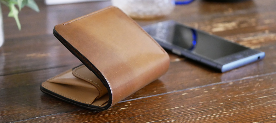 お札が入る二つ折り財布を限界まで小さくしました。